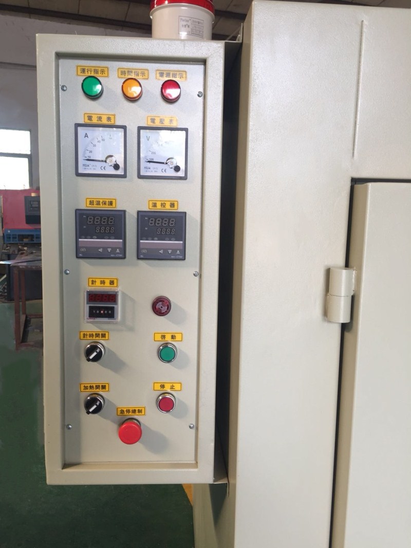 电控系统:电箱.总制开关.交流接触器.温控表用数显温控表、温度可调.烤箱内超温保护器,记时器,报警器,切项保护,电压表.电流表、开关.指示灯.耐高温电线.电览线.等一批国标电器开关组成.方便易懂.