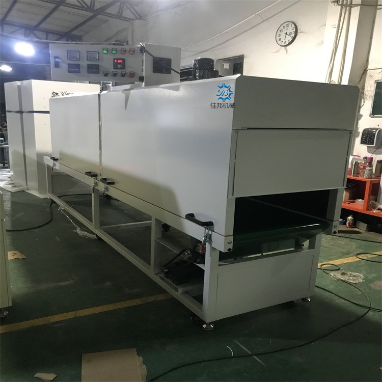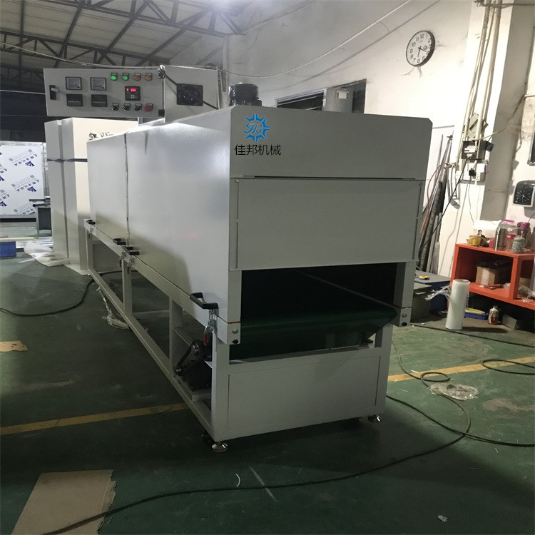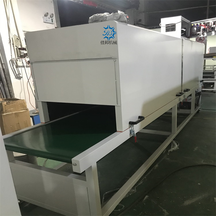 隧道炉采用电加热方式,分段独立加热,每段烘道温度人工设定,自动控温。原理是由风机把冷风送至安装在烘箱内风道壁上的电加热元件,加热为热风并经导流板从底部进入烘道烘干产品,热风与产品热交换后携带大量潮气经顶部排潮口排出烘箱外。产品运行是从烘箱一端进入,由链条、齿轮、滚筒托架使产品运行,产品烘干或定型后从另一端出来。由调速电机来调整运行速度,以达到理想的干燥效果和产量。本机运行具有平稳,操作简便,热效率好等优点.